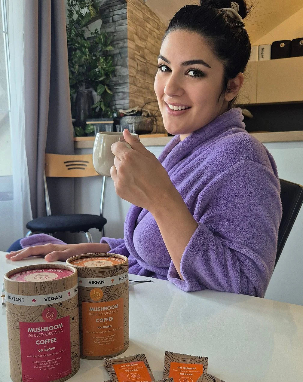 "Že štiri mesece pijem samo Mushroom Cups kavo in jo naravnost obožujem. Moja najljubša je Go Glow. Ne doživljam padcev energije, tesnobe, težav z želodcem ali spanjem, kot pri običajni kavi. Iskreno, upala sem, da ne bo tako dobra zaradi cene, vendar je res vredna! Okus je podoben instant kavi, lepo te zbudi in ti da energijo, po njej pa nimam kofeinskih tresljajev. Zelo priporočam!" Barbara Z. 01.03.2024.